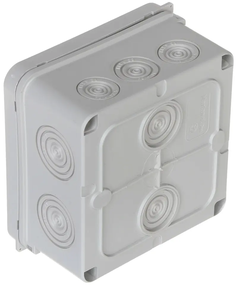 Puszka natynkowa, izolacyjna, odgałęźna 12 - wlotowa z dławnicami bezgwintowymi
