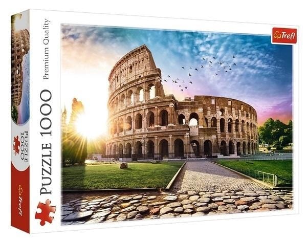 Puzzle 1000 elementów przedstawiające Koloseum w promieniach słońca. Puzzle mogą być świetną ozdobą ściany w kuchni i jadalni. Po ułożeniu powstanie obrazek o wymiarach 68x48 cm. Wysoką jakość, nasycenie kolorów i bezpieczeństwo układania zapewnia kalandrowany papier odbijający światło, pokryty ekologicznymi farbami spożywczymi.