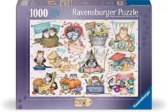 Od stycznia do grudnia będziesz świadkiem przezabawnych eskapad tych uroczych kulek futrzanych, przeżywających wzloty i upadki kociego życia, dzięki tej 1000-elementowej układance. Niezależnie od tego, czy powodują chaos fajerwerkami, drzemią na zalanej słońcem plaży, czy psują kłębki włóczki, te kapryśne kotki z pewnością wywołają uśmiech na Twojej twarzy dzięki swojej nieograniczonej energii i niepohamowanemu urokowi. Zbierz więc swoich ulubionych miłośników kotów, zwolnij miejsce na stole i przygotuj się na wyruszenie w mrucząco zachwycającą przygodę przez świat, w którym każdy dzień jest kocim świętem!