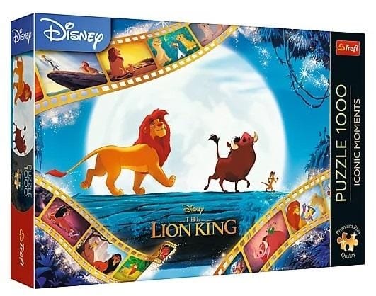 Puzzle Król Lew przedstawiają niezapomniane ujęcie z bajki Disneya. Po ich ułożeniu powstanie obraz o wymiarach 683x480 mm.