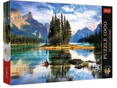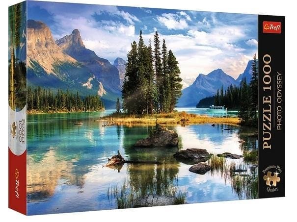 Puzzle Spirit Island, Kanada przedstawiają malutką wyspę na jeziorze Maligne. Po ich ułożeniu powstanie obraz o wymiarach 683x480 mm.