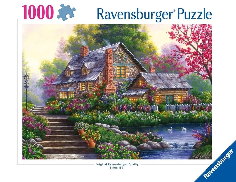Puzzle 1000 elementów Ravensburger z motywem: romantyczny domek na wsi