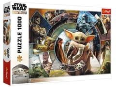 Puzzle Podróż Grogu, składające się z 1000 elementów, przedstawiają nietuzinkowy kolaż z bohaterami serialu The Mandalorian. Po ich ułożeniu powstanie obrazek w rozmiarach 683x480 mm.