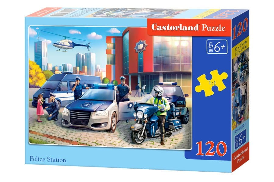 POLICE STATION PUZZLE 120 ELEMENTÓW Wielkość pudełka: 24.5×17.5×3.7 cm Rozmiar układanki: 32×23 cm