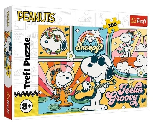 Zabawny świat Fistaszków to puzzle składające się z 300 elementów przedstawiające kolorowy, retro-stylizowany świat z postacią Snoopyego ukazaną w kilku zabawnych, pozytywnych scenkach. Po ułożeniu układanki powstanie obrazek o wymiarach 600x400 mm.