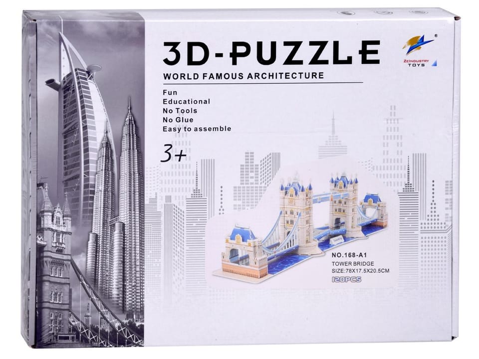 Puzzle 3D przedstawiające most zwodzony w Londynie, składające się z 120 elementów, to doskonała zabawka edukacyjna, która pozwala dzieciom i dorosłym zbudować własny model jednej z najbardziej znanych budowli na świecie. Ta układanka, nie wymagająca kleju ani wycinania, zapewnia wciągającą i rozwijającą zabawę.