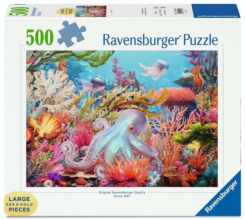 Puzzle wielkoformatowe Ravensburger to wspaniała rozrywka i doskonały sposób na relaks. Dzięki większym elementom i szczegółowym wzorom puzzle wielkoformatowe zawierające 500 lub 750 elementów są odpowiednie dla młodych i starszych, dla dzieci w wieku od 12 lat, rodziców i dziadków. Doskonała, łatwa zabawa z puzzlami - samemu lub z najbliższymi!