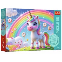Najważniejsze informacje:- liczba elementów: 60- wymiary po ułożeniu: ok. 41 × 27 cm- wymiary opakowania: ok. 27 × 19 × 4 cm- producent: Trefl- motyw: cukierkowy świat