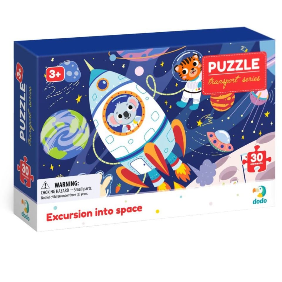 Puzzle Wyprawa w kosmos 30 elementów to fascynująca układanka, która zabierze dzieci w ekscytującą podróż kosmiczną. Kolorowy zestaw przedstawia wspaniałe obrazy związane z kosmosem, otwierając przed maluchami drzwi do niezwykłego świata gwiazd, planet i kosmicznych przygód. Układanie puzzli nie tylko dostarcza radości, ale także rozwija umiejętności manualne i koordynację ruchową.