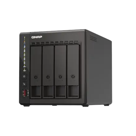 Model TS-453E jest wyposażony w złącza 2,5 GbE, 8 GB pamięci RAM i gniazda M.2 do buforowania SSD NVMe, co zapewnia wysoką wydajność w zastosowaniach takich jak systemy monitoringu, maszyny wirtualne, serwery plików lub serwery kopii zapasowych. Dwa wyjścia HDMI™ zapewniają również bezpośrednie odtwarzanie multimediów i solidny monitoring. Firma QNAP zapewnia długoterminową dostępność i wsparcie dla modelu TS-453E, przez co jest to doskonały wybór dla firm, które wymagają stosowania dopasowanych modeli NAS w wielu lokalizacjach.