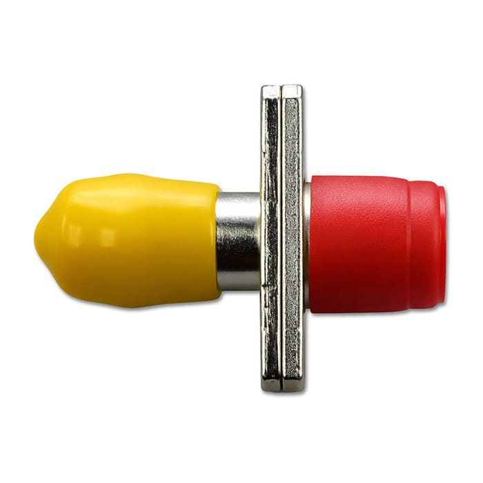 Adapter hybrydowy służący do połączenia światłowodów wielomodowych.Złącza: FC/UPC - ST/UPCTyp: Simplex Opis produktu Adapter hybrydowy służy do połączenia światłowodów jednomodowych lub wielomodowych o złączach FC/UPC – ST/UPC, które najczęściej wykorzystywane są w przełącznicach, łącząc patchcordy z pigtailami zespawanymi z kablem światłowodowym. Adaptery jednomodowe cechuje posiadanie ceramicznego elementu centrującego i jest on bardziej precyzyjnie wykonany niż adapter wielomodowy. Urządzenie może być stosowane w światłowodach o dużej prędkości transmisji danych. Schemat światłowodu wielomodowego Sygnał w światłowodzie wielomodowym pozwala na rozchodzenie się w nim modów światła o różnych wielkościach. Poprzez rozpowszechnianie wielu modów światła w światłowodzie, następuje tzw. dyspersja modowa, czyli rozmycie sygnału. Takie zjawisko ma wpływ na zmniejszanie prędkości oraz odległości transmisji. Światłowód wielomodowy jest idealnym rozwiązaniem w przypadku, gdy nie występuje konieczność transmisji na odległości większe niż 5 km. Zaufanie potwierdzone gwarancją