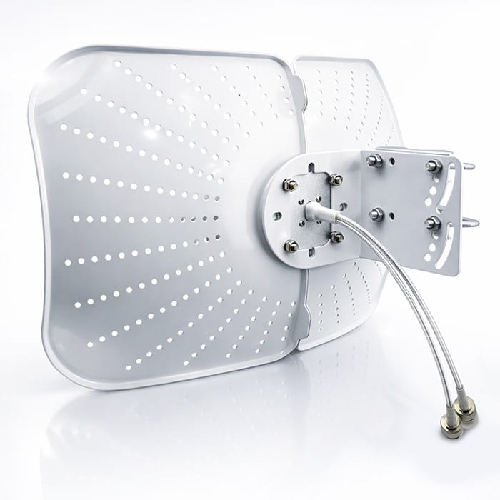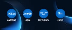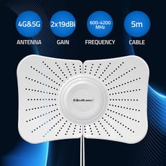 Antena kierunkowa 5G o zysku 2x19dBi, pracująca w paśmie 3300-3800MHz. Wyposażona w profesjonalne złącze oraz przewód 5 m, idealnie sprawdza się w instalacjach zewnętrznych wymagających poprawy jakości sygnału. Odporna na warunki atmosferyczne. Kompatybilna z routerami, modemami USB i urządzeniami IoT.