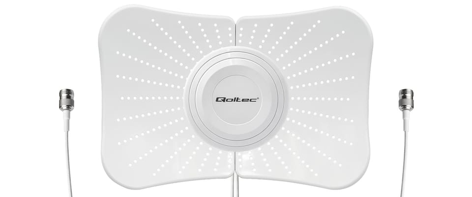 Qoltec Antena paraboliczna 4G 5G LTE | 2x19dBi | kierunkowa | zewnętrzna | 1710–2700 MHz | 3300–4200 MHz | N Female | wodoodporna | 5m