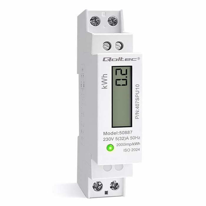 Qoltec Jednofazowy elektroniczny licznik | miernik zużycia energii na szynę DIN | 230V | 32A | LCD | 1P | Slim