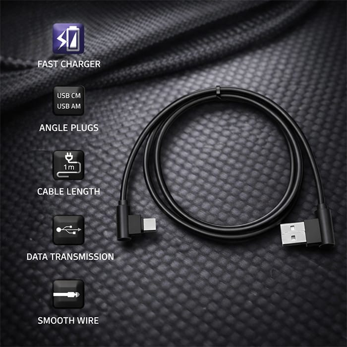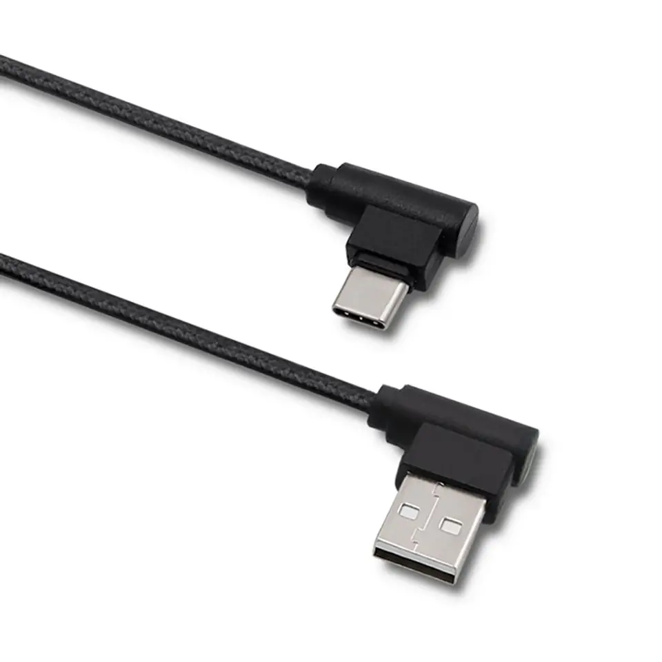 Nowoczesny, wzmocniony kabel w standardzie USB, posiadający kątowe wtyczki USB C męską i USB A męską. Zastosowane rozwiązanie zapewni komfort użytkowania, a także zabezpieczy przewód przed uszkodzeniami w miejscach najbardziej na to narażonych.