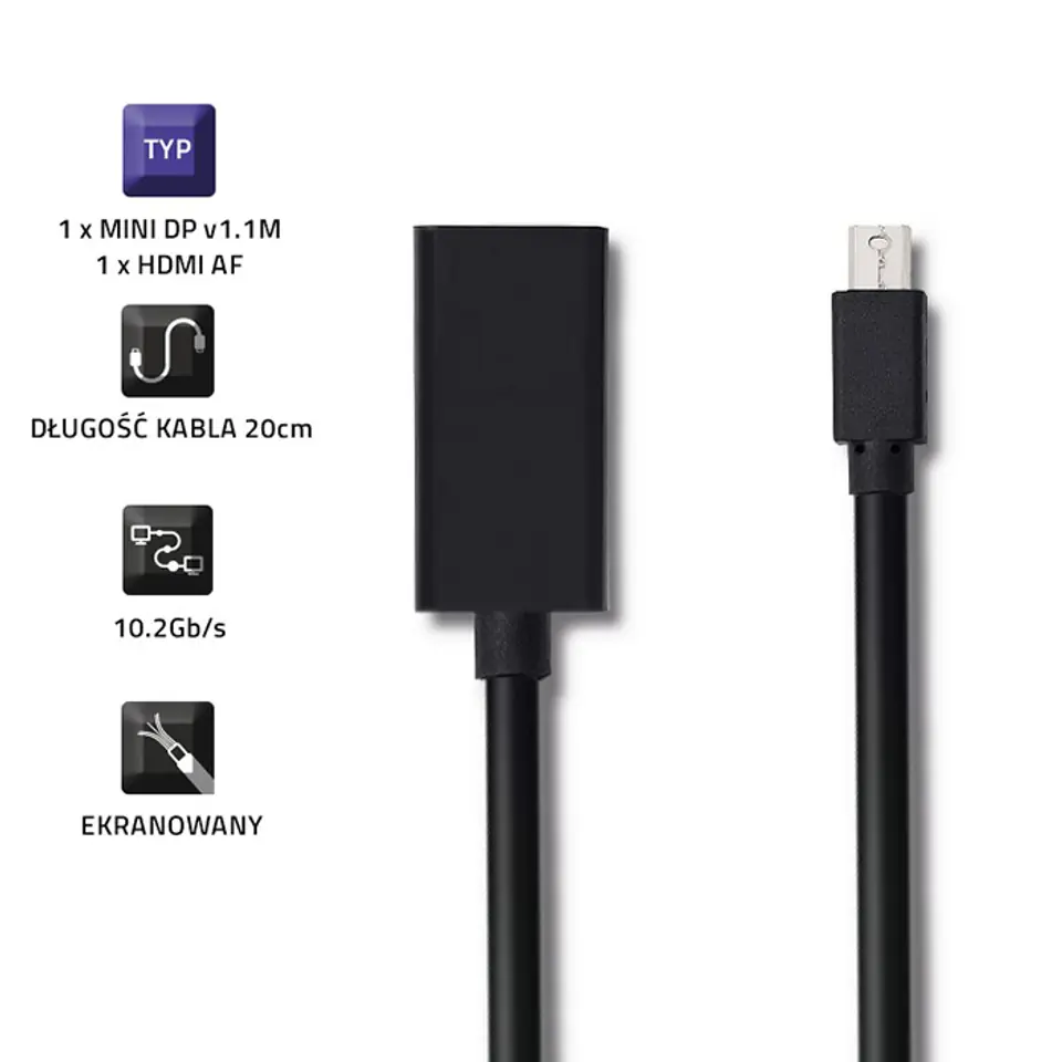 | Typ: | Mini DisplayPort męski / HDMI A żeński |