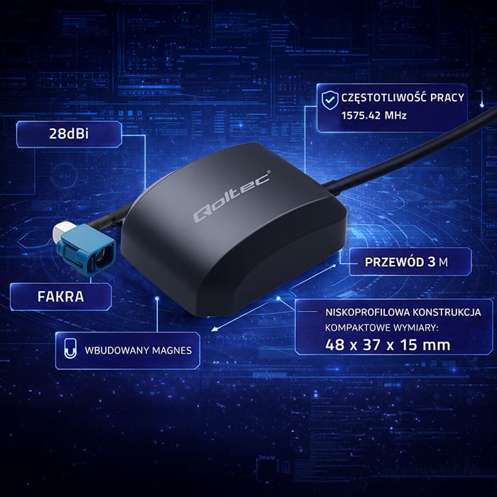 Nawigacja jak inne urządzenia wymagające stałego dostępu sygnału GPS, mogą tracić dokładność w trudnych warunkach — w gęstej zabudowie, między wysokimi budynkami, w lesie lub w miejscach o ograniczonej widoczności. Antena GPS marki Qoltec została stworzona po to, aby wyeliminować te problemy. Dzięki wąskiemu bandwidth 4 MHz, antena precyzyjnie filtruje sygnał w paśmie GPS L1 (1575.42 MHz), co pozwala skutecznie redukować zakłócenia z częstotliwości sąsiednich i poprawia stabilność pozycjonowania. Niskie VSWR ≤ 1.5 zapewnia idealne dopasowanie anteny do odbiornika, minimalizując straty odbitego sygnału i gwarantując maksymalną skuteczność pracy toru RF.