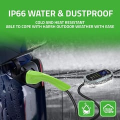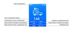 Produkt wyposażony w wielofunkcyjny, wyświetlacz LCD 2,4'' i diody LED informujące o stanie ładowania.Na wyświetlaczu możemy : - ustawić wartość natężenia prądu za pomocą przycisku A : 13A, 16A, 20A, 24A, 32A;- sprawdzić dokładny czas ładowania,- ustawić opóźnienie czasu ładowania,- monitorować temperaturę pracy ładowarki w czasie rzeczywistym dzięki wbudowanemu czujnikowi temperatury wtyczki, ładowarka natychmiast przerwie pracę, jeśli zostanie przekroczona bezpieczna wartość i automatycznie wznowi pracę po powrocie temperatury do normalnego poziomu,- monitorować postępy procesu ładowania,