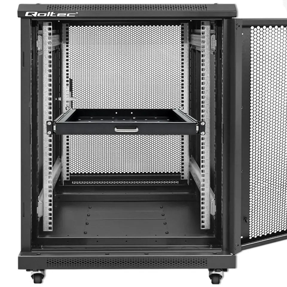 Solidna wysuwana półka przeznaczona do montażu w szafie Rack została wykonana z wysokiej jakości stali walcowanej na zimno. Perforowane dno półek zostało zaprojektowane w celu skutecznego odprowadzania ciepła z urządzeń, co przyczynia się do ich optymalnej pracy nawet przy intensywnym obciążeniu. Półki RACK marki Qoltec to gwarancja trwałości, stabilności i solidności, spełniające wymagania najbardziej wymagających instalacji teleinformatycznych