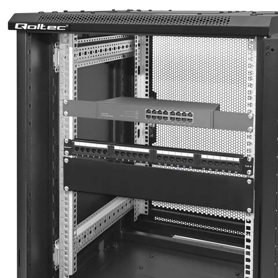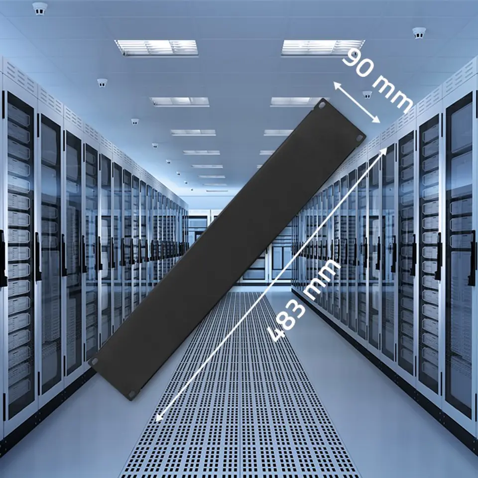 Zastosowanie panelu zaślepiającego nie tylko eliminuje puste przestrzenie między urządzeniami zamontowanymi w szafie, nadając szafie profesjonalny wygląd, ale również wspiera optymalną cyrkulację powietrza. Dzięki temu urządzenia wewnątrz szafy utrzymują odpowiednią temperaturę, co może przyczynić się do zwiększenia wydajności i trwałości sprzętu.
