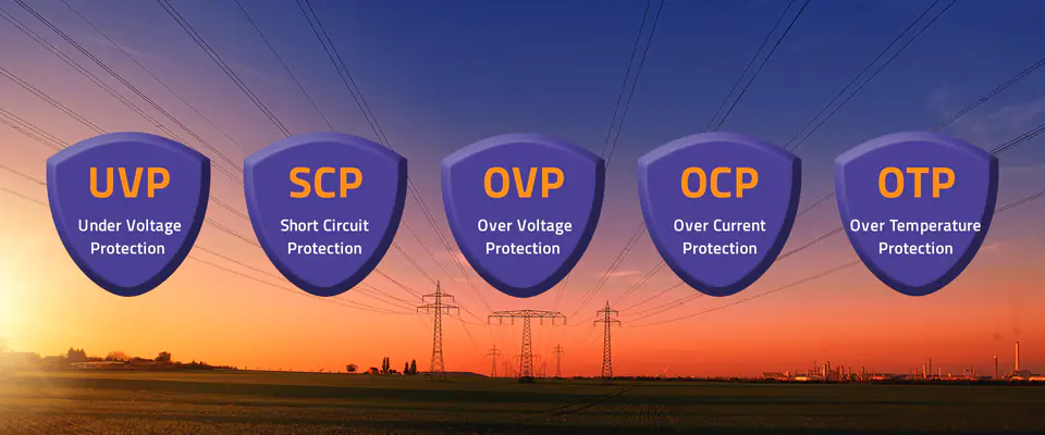 Zabezpieczenie UVP - chroni przed zbyt niskim napięciem na wyjściu,Zabezpieczenie SCP - to zabezpieczenie przeciwzwarciowe,Zabezpieczenie OVP - to ochrona przed zbyt wysokim napięciem wyjściowym,Zabezpieczenie OCP - to zabezpieczenie przed zbyt wysokim prądem na linii,Zabezpieczenie OTP - to zabezpieczenie przed przegrzaniem. Zaufanie potwierdzone gwarancjąProdukt objęty 24 miesięczną gwarancją