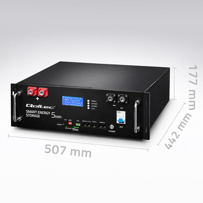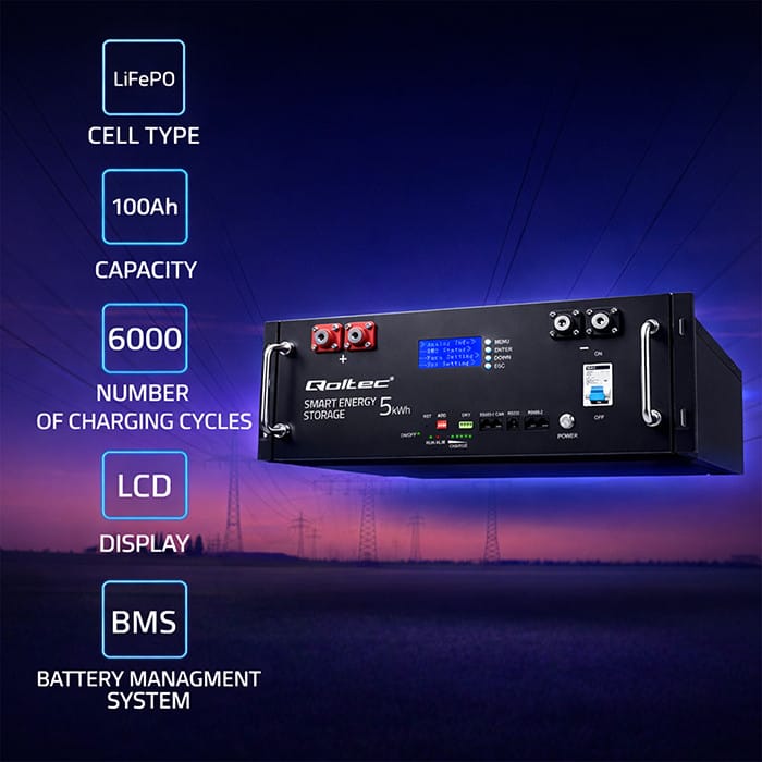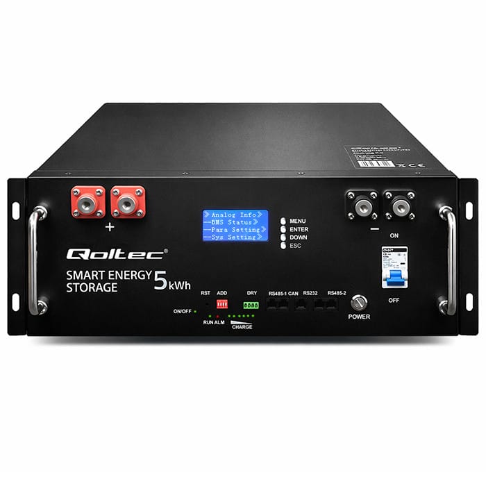 Magazyny energii marki Qoltec mogą bezpiecznie przechowywać i zarządzać energią wytworzoną z odnawialnych źródeł, takich jak energia słoneczna. Dzięki zastosowaniu nowoczesnej technologii LiFePo4 może osiągnąć kilka tysięcy cykli ładowania i rozładowania. Wbudowane oprogramowanie typu BMS gwarantuje bezpieczne użytkowanie poprzez kontrolowanie poziomu naładowania i rozładowania akumulatora. Posiada porty RS485 i RS232 i RS485-CAN. Magazynuj energię i korzystaj z niej, kiedy tylko chcesz
