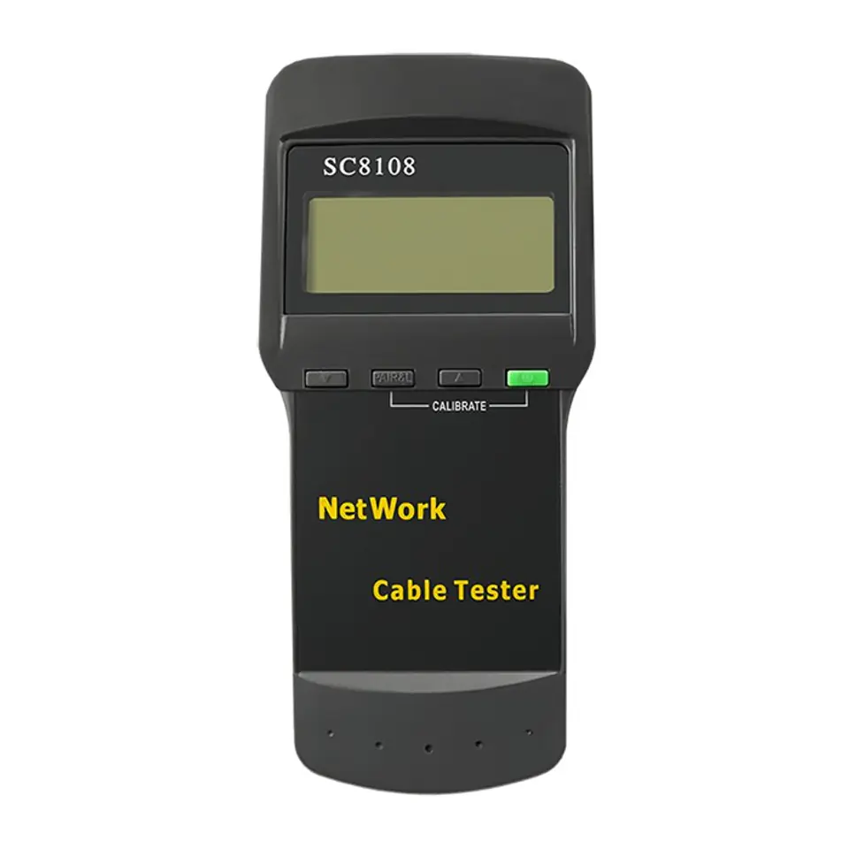 Tester umożliwia sprawdzenie podstawowych parametrów mechanicznych okablowania. Tester okablowania LAN Tester okablowania LAN wyposażony w duży, czytelny wyświetlacz, umożliwia sprawdzenie podstawowych parametrów mechanicznych okablowania oraz identyfikację podstawowych uszkodzeń występujących w okablowaniu miedzianym. Testowanie nie powinno się odbywać w sieciach aktywnych pod napięciem, ponieważ może spowodować to uszkodzenie urządzenia.