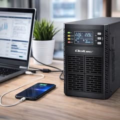 Zasilacz UPS 1kVA marki Qoltec wyróżnia :