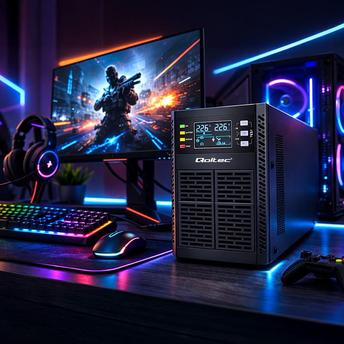 Zasilacze UPS marki Qoltec to stabilna pozbawiona zakłóceń czysta energia o sinusoidalnym kształcie. To pełna ochrona twoich urządzeń, dzięki podwójnej konwersji, która najpierw przekształca prąd przemienny zasilania sieciowego na prąd stały, a następnie na prąd przemienny, co zapewnia najwyższy poziom jakości zasilania i zabezpiecza przez potencjalnymi zakłóceniami w sieci takimi jak spadki napięcia, zaniki energii, przepięcia i awarie.