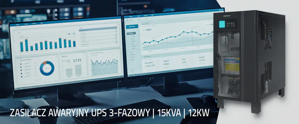 Sieciowe zasilacze awaryjne przeznaczone do urządzeń telekomunikacyjnych i do sprzętu do automatycznego przetwarzania danych, tak zwany zasilacz bezprzerwowy UPS 3-fazowy. W przypadku awarii zasilania zapewnia "rezerwę" energii zabezpieczając w ten sposób przed utratą danych.