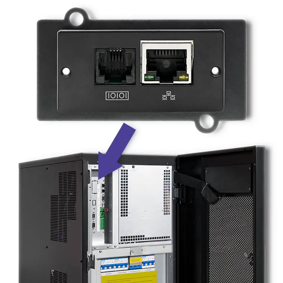 - Możliwość montażu karty SNMP lub podłączenia adaptera SNMP – to standard zarządzania siecią, dzięki któremu w szybki i prosty sposób zbierzesz informacje o podłączony urządzeniach, czy też skonfigurujesz ich parametry,
