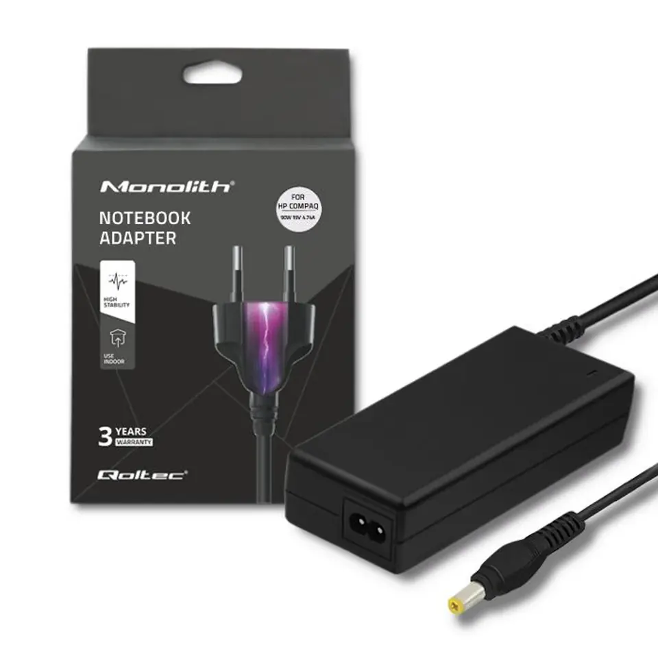 Qoltec Zasilacz do HP Compaq 90W | 19V | 4.74A | (4.2+4.8)*1.7 | +kabel zasilający 0NC