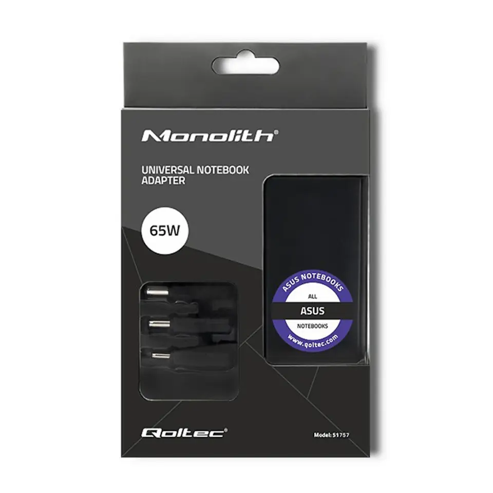 Qoltec Zasilacz specjalizowany do Asus 65W | 3 wtyczki | +kabel zasilający 0NC