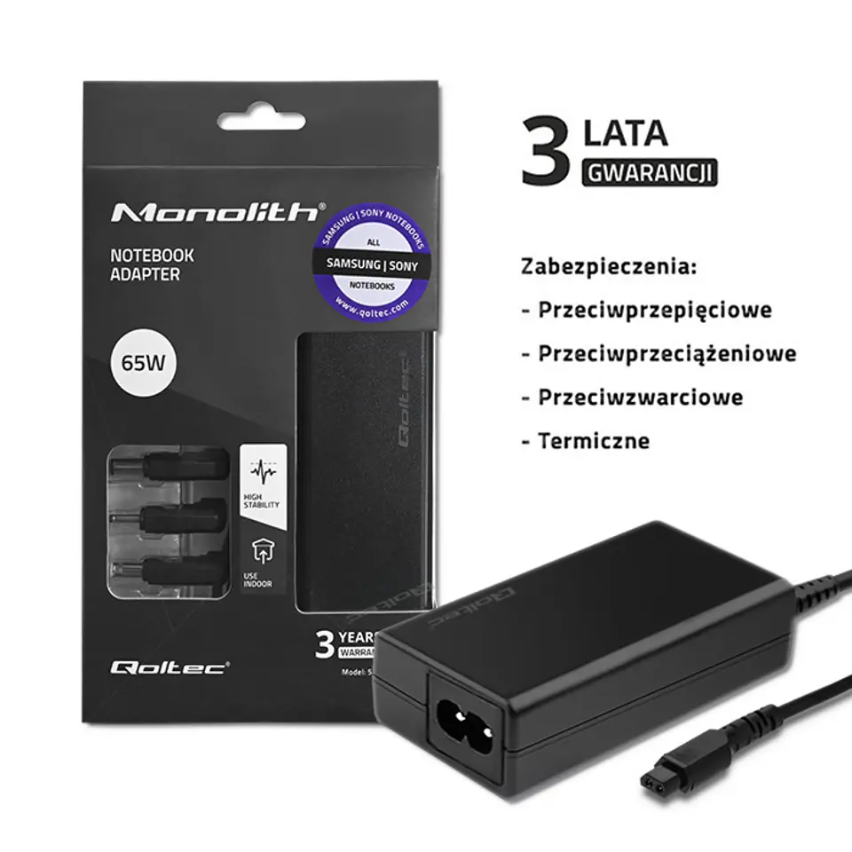 Czy Twój laptop Sony lub Samsung potrzebuje energii, która zawsze jest dostępna i kompatybilna? Poznaj nasz zasilacz specjalnie zaprojektowany dla laptopów Samsung i Sony! Wyposażony w trzy wymienne wtyczki dedykowane najpopularniejszym modelom tej marki, ten zasilacz zapewnia pełną wygodę i pewność działania. Niezależnie od tego, czy pracujesz w biurze, czy jesteś w podróży, zasilacz do Sony i Samsung marki Qoltec będzie zawsze gotowy, by dostarczyć Ci niezbędną moc. Odkryj nowy standard niezawodności i wygody z naszym zasilaczem 65W dedykowanym dla laptopów Sony/Samsung już dziś!