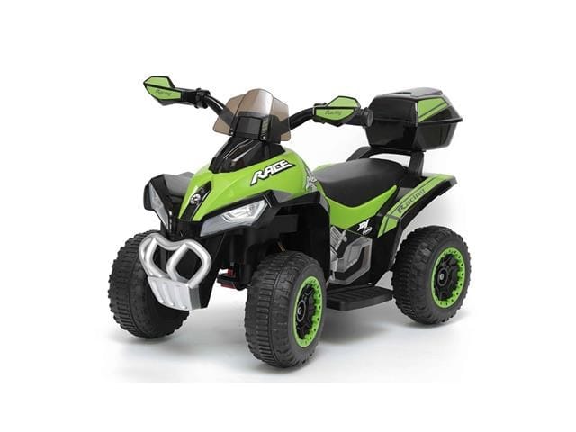 Dzięki niewielkim gabarytom, quad zmieści się w mieszkaniu, pokona alejki w parku lub na placu zabaw. Pojazd zaprojektowano dla dzieci powyżej 3 lat, co zapewnia wygodę najmłodszym użytkownikom. Dzięki temu, że jest elektryczny porusza się bardzo cicho i nie wywołuje emisji spalin , więc jest ekologiczny i bezpieczny dla dzieci. Minimalny poziom hałasu podczas jazdy z pewnością docenią wszyscy sąsiedzi. Wesoły czas przejażdżki umili Twojemu dziecku muzyka, wydobywająca się po każdorazowym naciśnięciu czerwonego guzika. Wraz z 3 różnymi melodyjkami migają światła LED w przednich lampach pojazdu. Specjalny przycisk PRZÓD,TYŁ I STOP aktywowany czerwonym pedałem pozwala dziecku na wybór kierunku jazdy. Dołączony akumulator zapewni stały poziom naładowania baterii, a tym samym dostęp do wszystkich dźwięków, efektów świetlnych i co najważniejsze do możliwości poruszania się. QUAD ELEKTRYCZNY MICRON z pewnością zadowoli każdego, nawet wybrednego malucha! Parametry:- Wymiary: 78.5 x 40.5 x 46 cm (dł. x szer. x wys.)Wymiary kuferka: 10 x 17 x 17 cm (wys. x szer. x gł.)Wymiary siedzenia: 28 x 15,5 x 4,5 cm (dł. x szer. x wys.)Wymiar kółka: 18 x 7,5 cm (śr. x szer.)Wymiar kierownicy: 40 cm (szer.)Wymiar rączek w kierownicy: 7 x 2,5 (szer. x śr.)Kolor: Zielony, czarnyINPUT: 110- 240 VSilnik: 380WAkumulator: pojemność 6 V 4,5 AhZalecany wiek: Dzieci w wieku powyżej 3 latWaga maksymalna użytkownika: 20 kgPrędkość: 3 km/hCzas ładowania: 8-12 godzin / PRACA: 1-2 GODZ.Baterie pilota: BRAK PILOTAŁadowarka: DC6V500mAOpakowanie: 64 x 35 x 29,5 cm (szer. x gł. x wys.)Waga netto : 4,960 kgWaga brutto : 5,800 kgMarka: ENERO