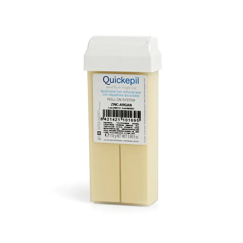 Wosk QUICKEPIL roll-on jest specjalnie stworzony dla kosmetyczek, które szukają znakomitych rezultatów. Dzięki specjalnej recepturze rolka rozciąga wosk na znacznie cieńsze paski co powoduje, że stygnie niemal natychmiast minimalizując pieczenie. Produkt jest następnie łatwo usunąć za pomocą pasków. Pojemność: 110 g