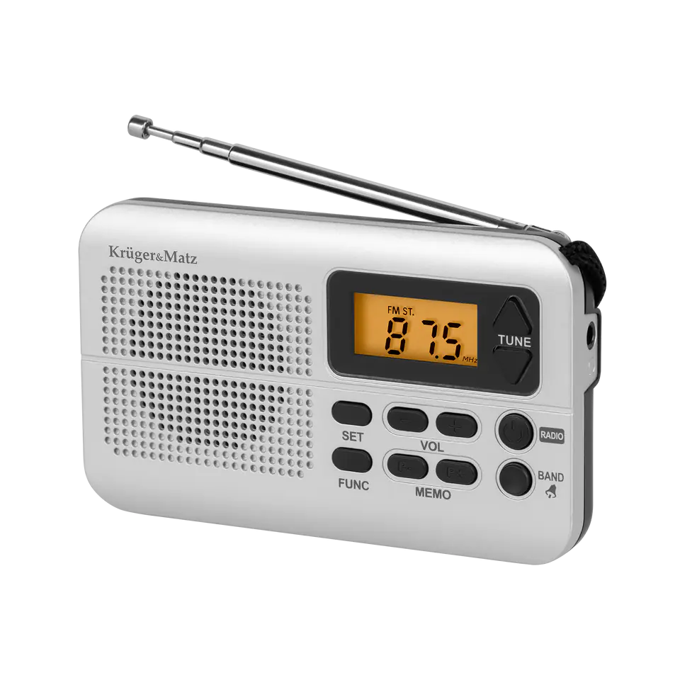 Niewielka obudowa skrywa w sobie teleskopową antenę o długości 20 cm, dzięki której radio kieszonkowe Kruger&Matz umożliwi znakomity odbiór sygnału. Uzupełnieniem wyposażenia jest gniazdo jack 3,5 mm, do którego możesz podłączyć słuchawki przewodowe, by cieszyć się audycjami nie zakłócając spokoju domowników.