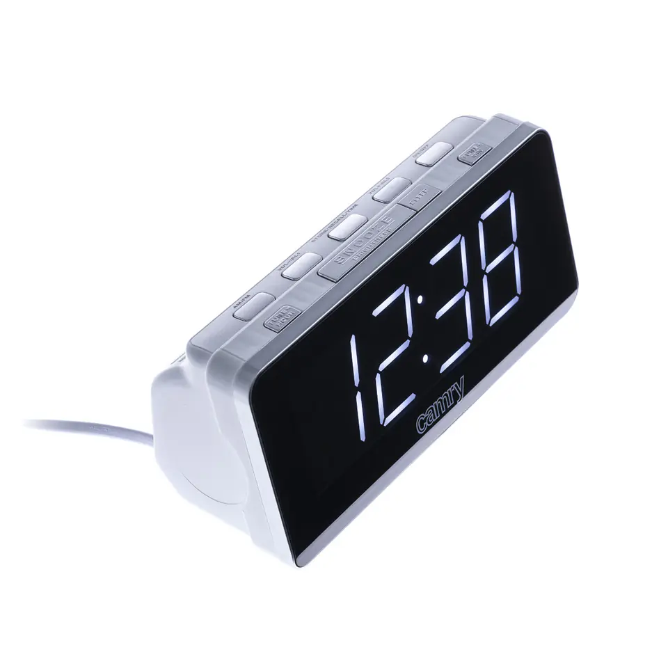 Przede wszystkim decydujesz, czy ma Cię budzić dźwięk, czy radio. Sam budzik ma funkcję drzemki i zasypiania, a do tego opcję wykorzystania dwóch osobnych alarmów. Natomiast radio działa w częstotliwościach AM i FM, w których możesz zaprogramować po 10 stacji. Dużą zaletą jest czytelny wyświetlacz LED, z którego łatwo odczytasz godzinę w każdych warunkach oświetleniowych. Camry - budzenie z przyjemnością.