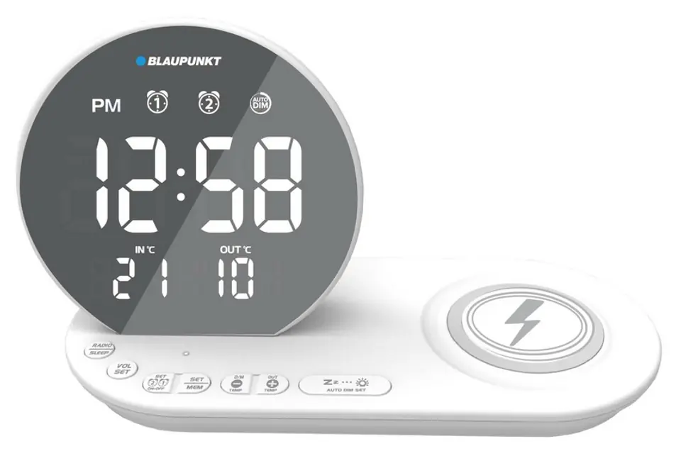 SPECYFIKACJA:Radio FM PLL z pamięcią 20 stacjiZegar z funkcją podwójnego alarmu i drzemkiFunkcja ładowania bezprzewodowego QiPort USB do ładowania telefonu i innych urządzeń przenośnychDuży wyświetlacz LEDUstawienia alarmu (codziennie, dni powszednie, weekendy)Regulowane przyciemnianie wyświetlaczaAlarm radiem lub brzęczykiem • Czujnik temperatury zewnętrznejWbudowany czujnik temperatury wewnętrznejZasilacz sieciowy: DC 5 V 2,5 APodtrzymanie pamięci: CR2032 (nie załączona w zestawie)Wymiary: 210 (szer.) x 119,3 (wys.) x 90 (gł.) mmWaga: 0,2 kgCR85WH CHARGERadiobudzik FM/ALARM/USB CR85WH CHARGEPobudka z ulubioną stacją radiową!To niewielkie, nowocześnie wyglądające urządzenie zostało wyposażone w tuner FM z cyfrową syntezą PLL i pamięcią 20 stacji radiowych. Dzięki funkcji automatycznego wyszukiwania i zapisywania ulubionych częstotliwości proces strojenia radia jest bardzo łatwy i nie zajmuje wiele czasu.Wbudowany zegar z funkcją podwójnego alarmu pozwala na ustawienie dwóch różnych godzin budzenia, a funkcję drzemki, którą można regulować w zakresie od 5 do 60 minut, z pewnością docenią osoby potrzebujące nieco więcej czasu do pełnego rozbudzenia.**