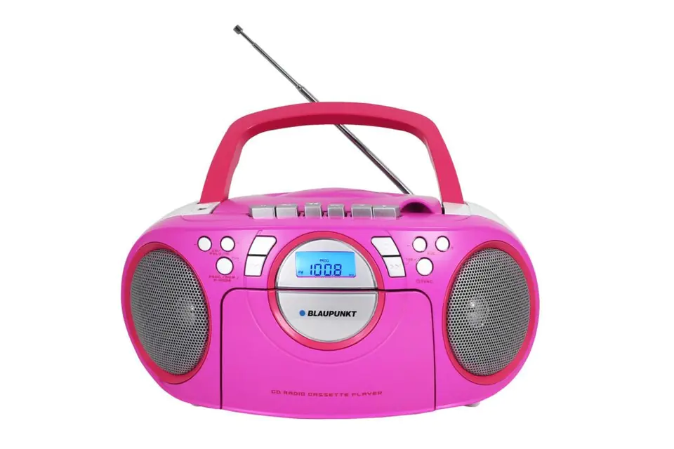 SPECYFIKACJA:Odtwarzacz CD ładowany od góry z odtwarzaniem plików MP3Radio FM PLL z pamięcią 40 stacjiOdtwarzacz kasetowyGniazdo USBMoc wyjściowa: 2 x 1,7 W RMSTeleskopowa antena radiowaWyświetlacz LCDWejście liniowe 3,5 mmGniazdo słuchawkoweZasilanie bateryjne: 6×1,5 V / R20 (baterie nie są dołączone)Zasilanie: AC 230 V ~50 HzWymiary: 285 (szer.) x 213 (wys.) x 140 (gł.) mmWaga: 1,68 kgBB16PK to nowy model Boomboxa z bogatej oferty produktów marki Blaupunkt. Zabierz dźwięki swoich ulubionych piosenek w dowolne miejsce dzięki temu przenośnemu zestawowi odtwarzacza 3 w 1, stworzonemu do obsługi różnych formatów audio. Możesz słuchać płyt CD lub stacji radiowych FM lub odtwarzać muzykę bezpośrednio z dysku flash USB lub dowolnego innego zewnętrznego źródła dźwięku, które można podłączyć przez gniazdo AUX. Model ten wyposażony jest również w magnetofon kasetowy, umożliwiający odtwarzanie nagrań analogowych wykonanych na kasetach audio**
