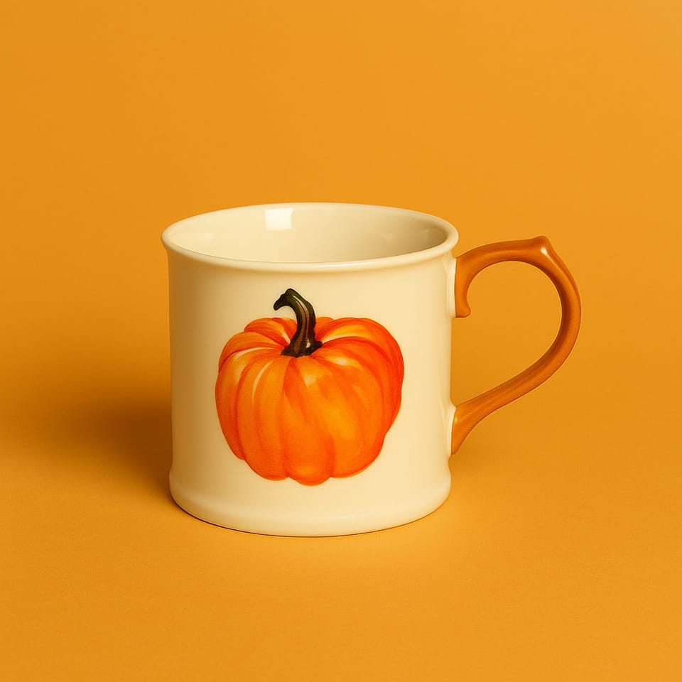 Wprowadź do swojego domu odrobinę jesiennego klimatu dzięki wyjątkowemu kubkowi RADO z motywem dyni. Ten porcelanowy kubek o pojemności 350 ml został zaprojektowany z myślą o codziennym komforcie i estetyce.Charakterystyka produktu:Materiał: Kubek wykonany jest z wysokiej jakości porcelany. To materiał gładki, przyjemny w dotyku, lekki, a jednocześnie bardzo wytrzymały. Porcelana nie chłonie zapachów ani kolorów napojów.Motyw: Na zewnętrznej powierzchni kubka znajduje się wyraźny, wypukły nadruk dyni w intensywnych, ciepłych, pomarańczowych barwach. Motyw dyni symbolizuje jesień i domowe ciepło, idealnie wpisując się w sezonowe aranżacje.Kolorystyka: Kubek jest w kolorze kremowym, z pomarańczową rączką i dużą grafiką dyni na froncie. Kolory są kontrastowe, wyraziste i przyjazne dla oka.Pojemność: 350 ml . to ilość, która pozwala cieszyć się dużą kawą, herbatą lub gorącą czekoladą.Wymiary:Wysokość: 9 cm . kubek jest na tyle wysoki, że wygodnie mieści się w dłoni, ale nie jest zbyt masywny.Szerokość z uchem: 13,5 cm . to całkowita szerokość kubka mierzona od zewnętrznej krawędzi ucha do przeciwległego brzegu. Dzięki temu uchwyt jest przestronny i wygodny nawet dla większej dłoni.Średnica: 8,8 cm . to szerokość otworu kubka, która pozwala swobodnie mieszać napój i wygodnie pić.Funkcjonalność: Kubek można bezpiecznie myć w zmywarce oraz używać w kuchence mikrofalowej . nie musisz się martwić o blaknięcie kolorów czy uszkodzenie materiału.Wykończenie: Delikatnie zaokrąglone krawędzie kubka zwiększają komfort picia, a szeroka podstawa zapewnia stabilność na stole.Opis dotykowy i użytkowy:Kubek jest gładki, lekki, z lekko rozszerzającą się ku górze krawędzią. Uchwyt jest szeroki, wyprofilowany tak, by wygodnie leżał w dłoni . nawet jeśli trzymasz go obiema rękami. Na froncie, pod palcami, wyczuwalny jest delikatny wypukły wzór dyni. Kubek daje poczucie solidności, nie ślizga się w dłoni i nie nagrzewa się zbyt mocno po wlaniu gorącego napoju.Zastosowanie:Idealny do codziennego użytku . zarówno w domu, jak i w pracy. Świetnie sprawdzi się również jako prezent na jesienne wieczory, dla miłośników ciepłych napojów i sezonowych dekoracji.