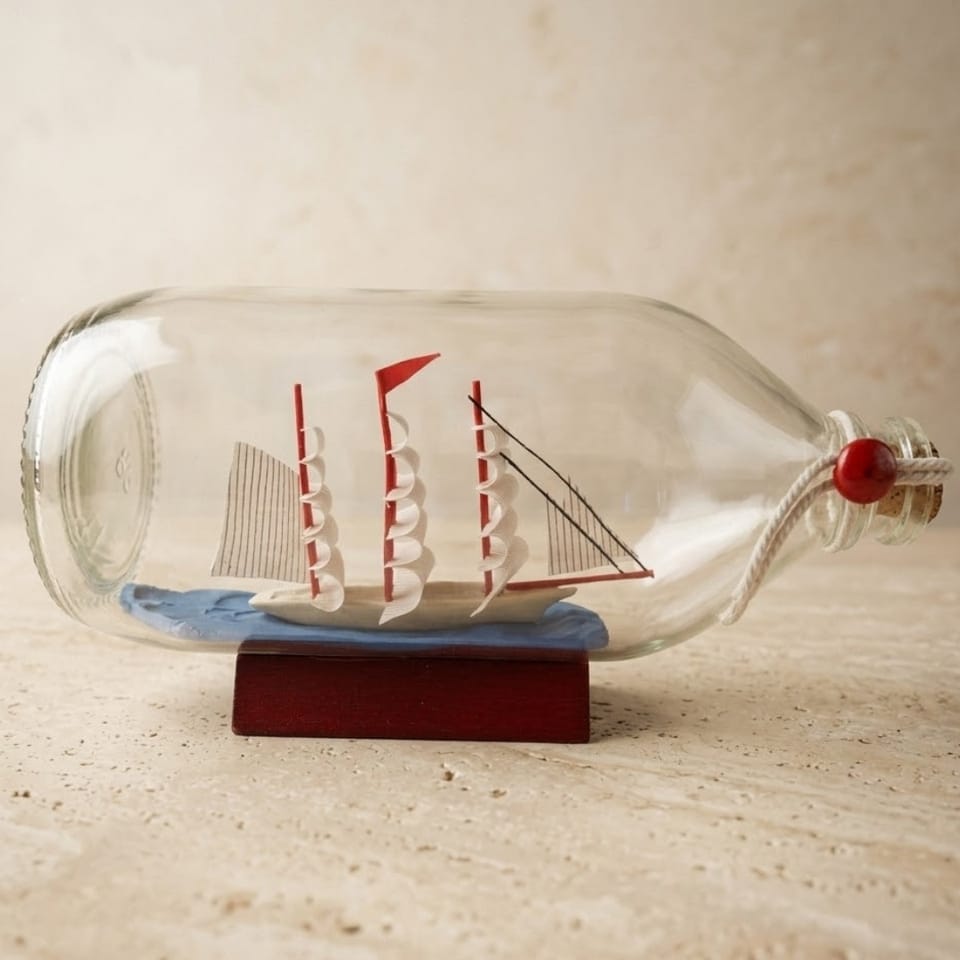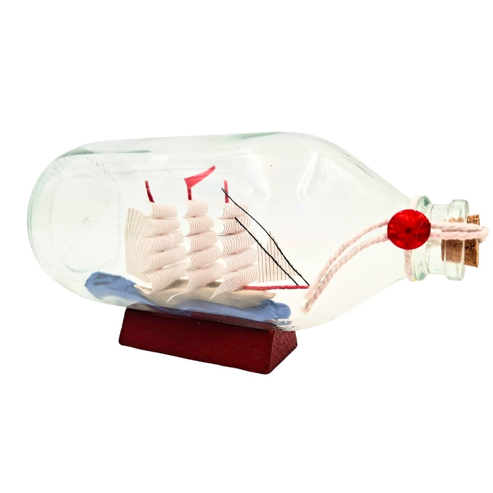 STATEK W BUTELCE RAFANDYNKA NA PODSTAWIE PREZENT DEKORACJA MARYNISTYCZNA Oryginalny model statku w butelce umieszczony na stabilnej drewnianej podstawie. Dobrze sprawdzi się jako element dekoracyjny na kominku, półce w salonie lub biurku, dodając wnętrzu morskiego charakteru. To idealny pomysł na symboliczny prezent dla żeglarza lub miłośnika morskich akcentów. To dekoracja, która wniesie do Twojego wnętrza ducha morskich przygód i elegancji. INFORMACJE O PRODUKCIE: • Wymiary: 18 x 8 x 10 cm • Podstawa: Stabilna, wykonana z drewna • Styl: Klasyczny marynistyczny DLACZEGO WARTO: • Ponadczasowy design: Unikalna ozdoba przyciągająca wzrok i intrygująca gości. • Wysoka jakość: Precyzyjne wykonanie każdego detalu miniaturowego statku. • Idealny prezent: Gotowy pomysł na oryginalny upominek dla bliskiej osoby. IDEALNY PREZENT DLA: • Miłośnika żeglarstwa i morza • Fana modeli i unikalnych gadżetów • Dla taty lub dziadka na urodziny • Dla szefa do gabinetu