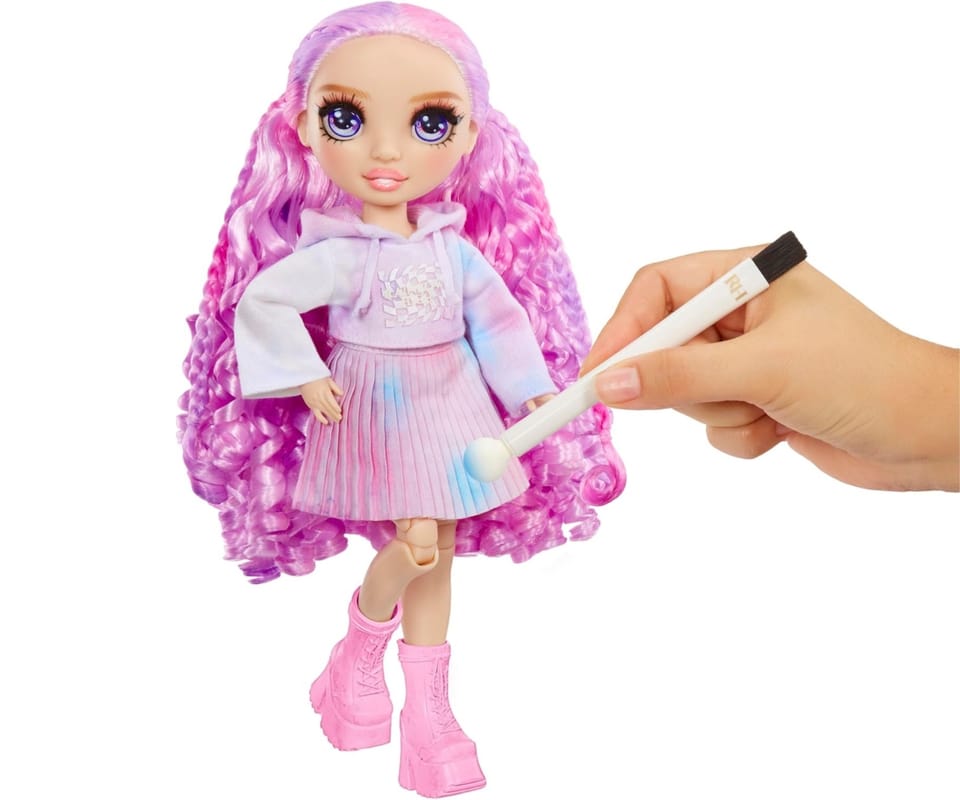 Nowa seria bestsellera! Rainbow High Watercolor & Create Fashion. Lalki inspirują kreatywność. Dzięki nowej serii można zaprojektować swoje własne lalki metodą Tie-Dye! Możesz zaprojektować im ubrania oraz zmienić kolor włosów. Zmywalne farbki można używać nawet na własnych włosach! Następnie po prostu spłucz i powtórz i zrób to od nowa. W serii znajdują się trzy nowe lalki, wszystkie w białym kolorze dla najlepszego efektu farbowania.