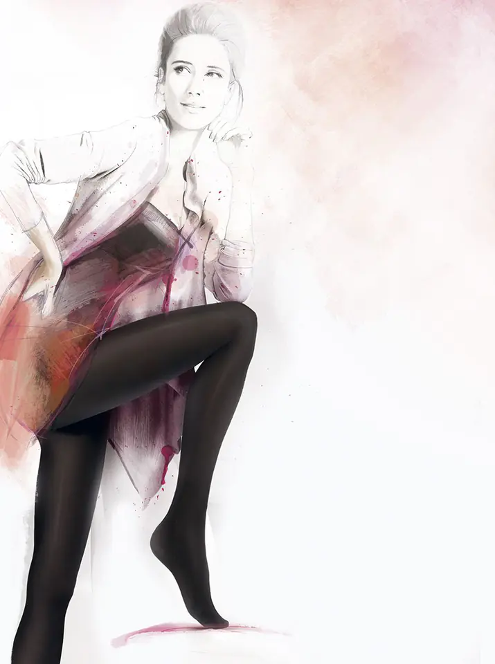Eleganckie, matowe i kryjące rajstopy damskie z innowacyjnej przędzy 3D, miękkie i aksamitne w dotyku. Skład: poliamid 85%, elastan 14%, bawełna 1%.