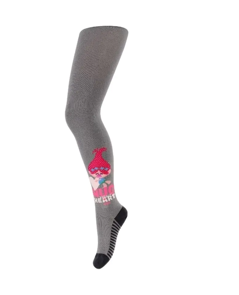 Kolorowe rajstopy dziewczęce z kolekcji Trolls, wzorowane komputerowo. Wykonane z wysokiej jakości bawełny. Skład: 84% bawełna, 12% poliamid, 2% polipropylen, 2% elastan.