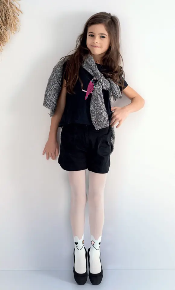 Dziewczęce rajstopy wzorzyste wykonane z mikrofibry. Wszysty mały klin. Skład: 90% poliamid, 10% elastan.