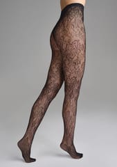 Rajstopy kabaretki w kwiatowy ornament na całej długości, o średnim splocie, dają wyrazisty efekt prześwitu, a dekoracyjny motyw podkręca stylizację i przyciąga spojrzenia. Bezszwowa konstrukcja,wygodna gumka w pasie. Skład: 95% nylon, 5% elastan.