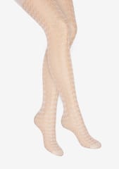 Rajstopy żakardowe wykonane z najwyższej jakości przędzy. Wyjątkowy, żakardowy wzór, mały klin, wygodna gumka w pasie, brak żakardu na palcach. Grubość 20 den. Skład: 89% poliamid, 10% elastan, 1% bawełna.