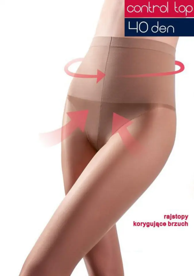 Rajstopy damskie, 40 den, modelujące sylwetkę i korygujące brzuch. Bezpalcowe. Zwiększona trwałość wyrobu i odporność na zaciąganie. Dają komfort noszenia oraz idealnie dopasowują się do sylwetki. Skład: 89% poliamid, 10% elastan, 1% bawełna.