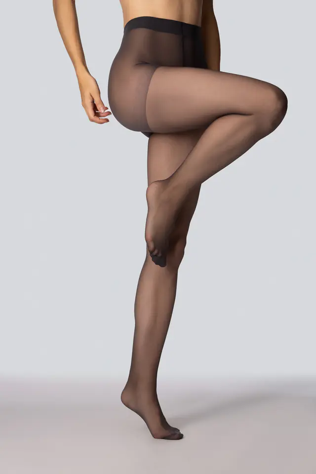 Klasyczne rajstopy damskie 15 den, wzmocnione w części majtkowej, z klinem. Skład: 89% polyamid, 11% elastan.